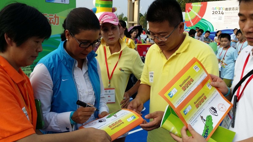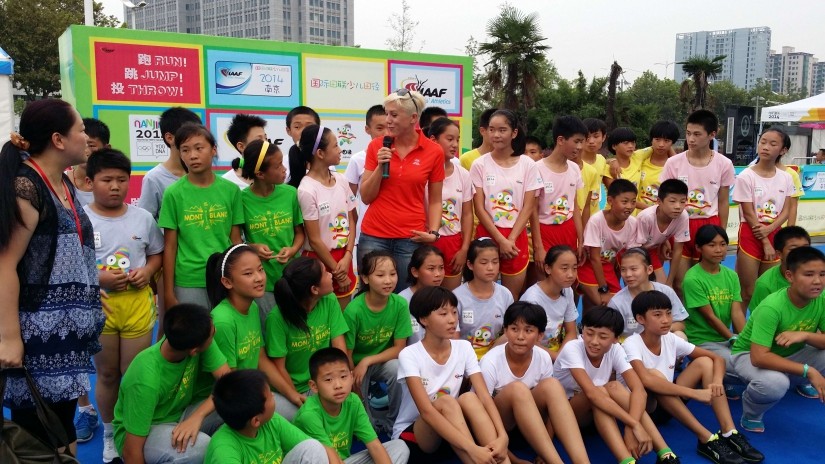 跳高名将卡杰萨·贝格圭斯特为亚军队颁奖