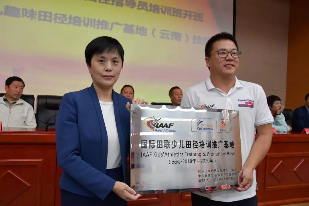 2018年9月7日至9日,国际田联少儿趣味田径培训推广基地授牌仪式在云南大学举行。云南省教育厅体卫艺处处长徐忠祥、云南省学生体育协会会长姜征明、国际田联少儿趣味田径中国区推广运营中心主任高永强、云南大学副校长赵琦华、云南省学生体育协会副会长张国华、云南省学生体育协会田径专业委员会主任李国忠等相关部门负责人出席了授牌仪式。仪式由云南省学生体育协会田径运动专业委员会副主任朱永莉主持。