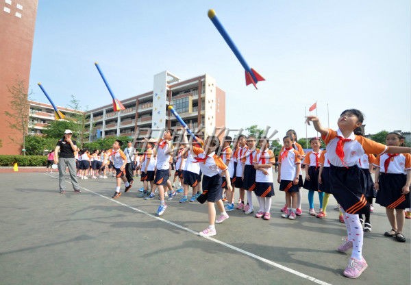 与会老师在葛小操场观摩少儿趣味田径项目课例展示活动。葛小的七位体育老师利用软式体育器材组织教学,内容新颖,形式多样,虽然天气炎热,学生们在阳光下满头大汗,但仍不知疲倦、乐在其中,充分享受着这些运动项目带来的运动趣味,不知不觉中掌握了体育运动技能,现场观摩的老师也对新颖的趣味田径和软式器材非常好奇和感兴趣,频频拍照、询问学生的感受。