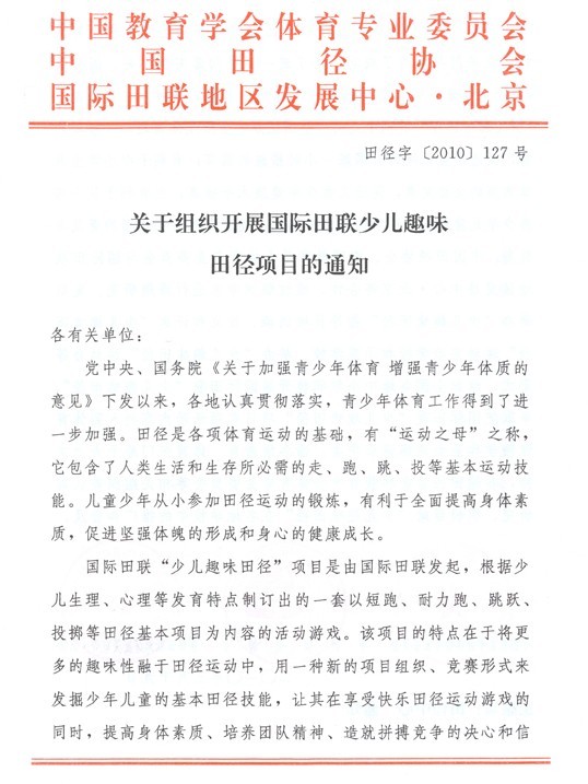关于组织开展国际田联少儿趣味田径项目的通知