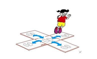 (三)十字交叉跳方法:参赛者按照1-4的顺序从十字交叉的跳板的中心跳到各个方向方,再跳回中心,计1分,累加20秒的完成分数。