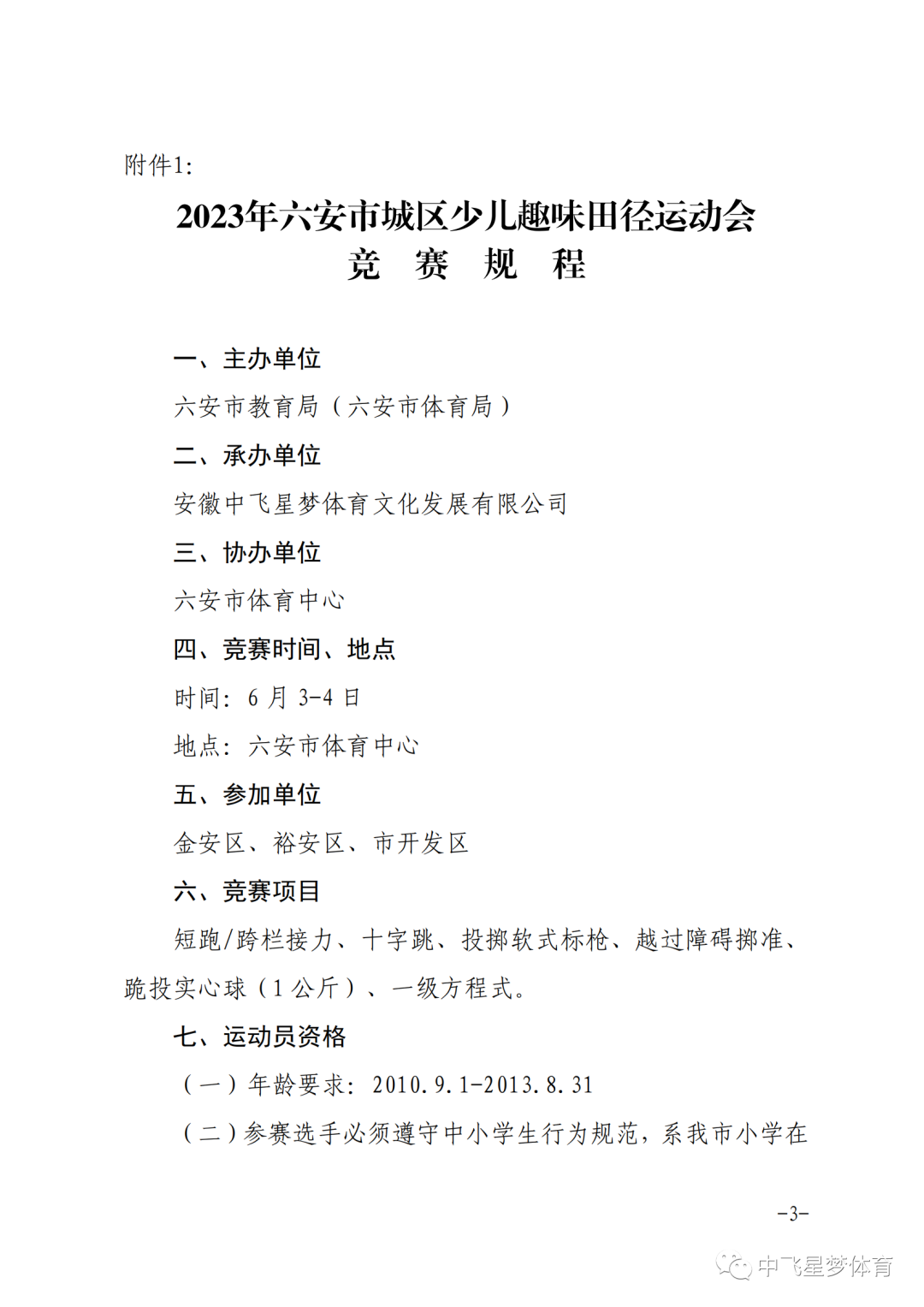 关于举办“奔跑吧·少年”儿童青少年主题 健身活动暨2023年六安市城区“六一”少儿趣味田径运动会的通知