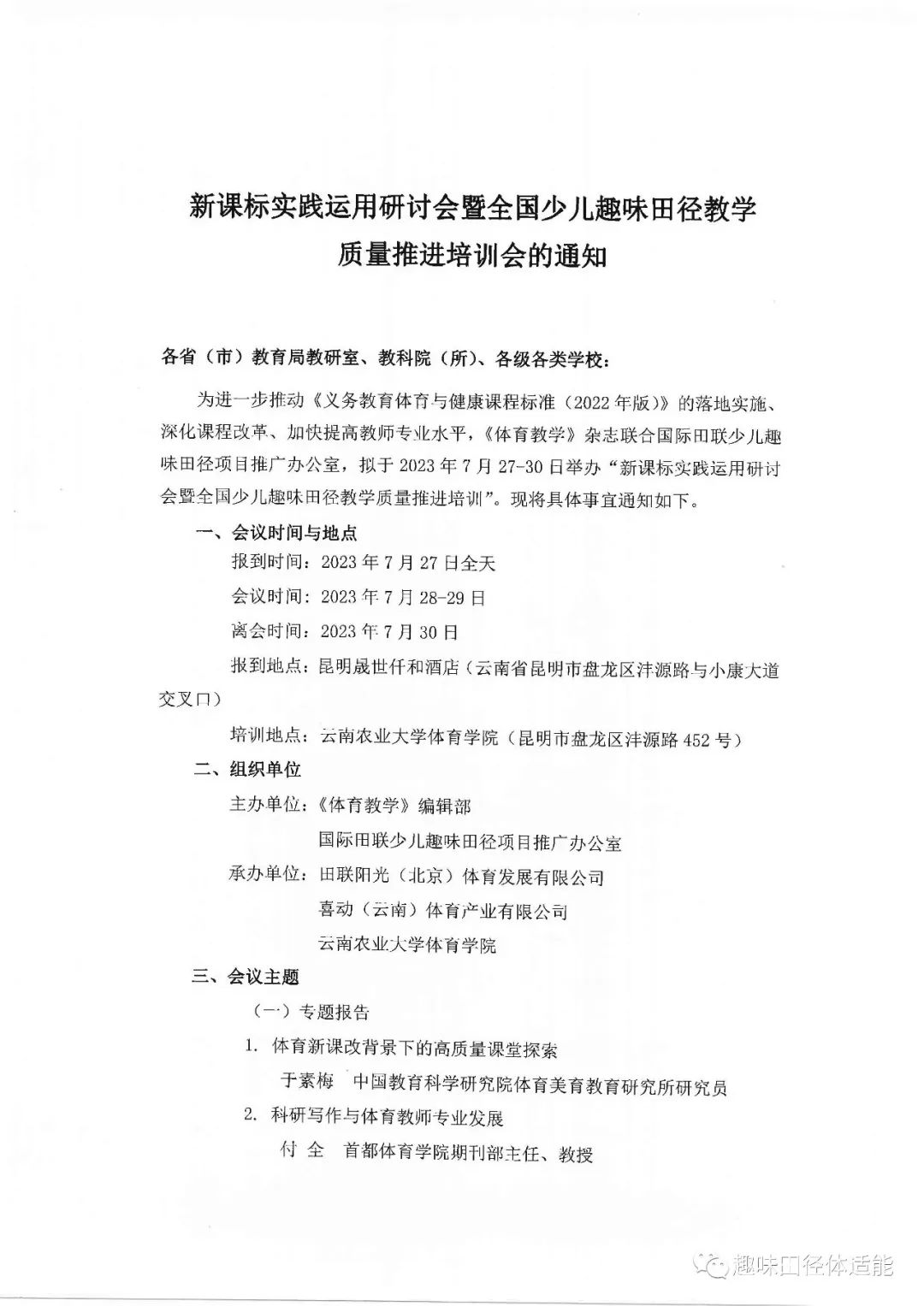 新课标实践运用研讨会暨全国少儿趣味田径教学质量推进培训会的通知