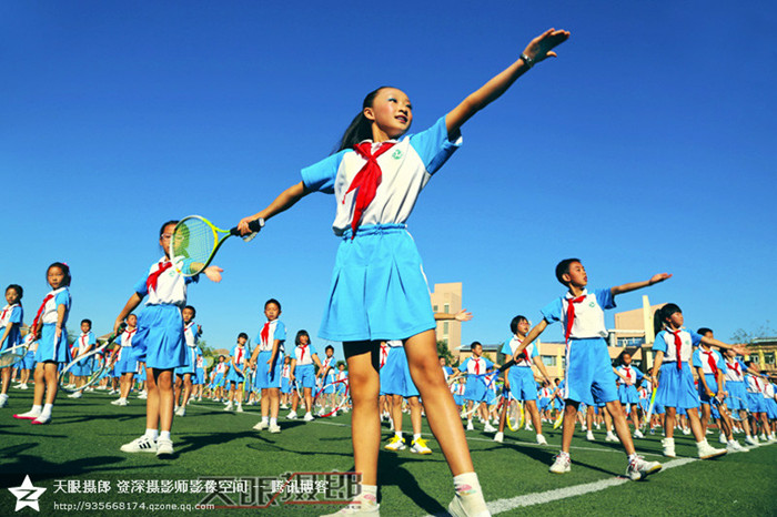 北京农学院附属小学操场上,900多名孩子快乐的表演着数百种体育课项目, 孩子们整齐划一的表演迎来现场嘉宾和观众们的阵阵掌声。