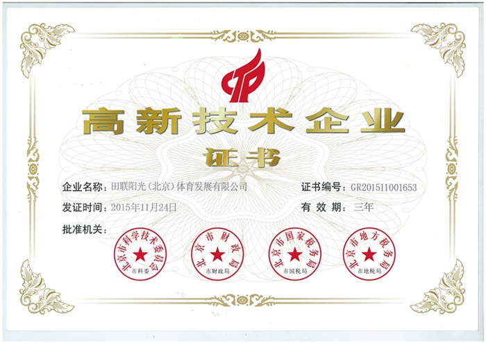 热烈祝贺田联阳光(北京)体育发展有限公司通过国家高新技术企业认证,这既是前期创新工作的阶段总结,更是新征程的起点!