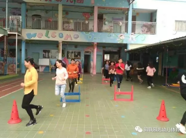 速度阶梯、趣味投掷、趣味十字跳、小小保龄球等......一个个有意思的趣味田径体育游戏在培训老师认真讲解分解动作的同时,老师们认真练习中.....
