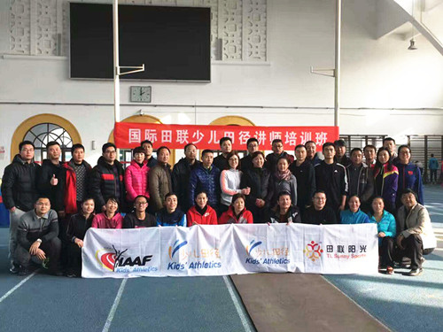 由国际田联地区发展中心·北京主办,田联阳光(北京)体育发展有限公司承办的国际田联少儿田径讲师培训班,于2017年1月16日-17日,在北京体育大学国际田联地区发展中心培训教室成功举办。此次培训共有来自全国二十多个省市知名大学体育学科的三十多位教授们共聚一堂,展开了为期两天的系统培训,国际田联地区发展中心执行主任孙南出席开班仪式并讲话,田联阳光总经理高永强做了“贯彻中央文件精神,强化学校体育工作,普及少儿田径运动”的专题讲座。