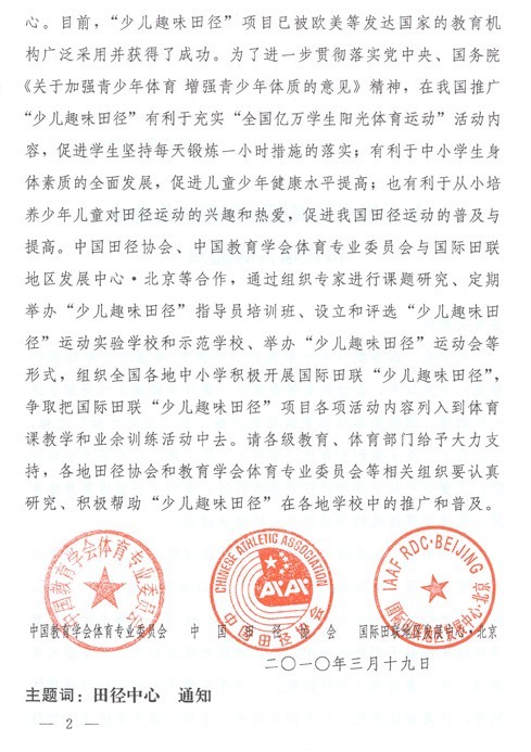 关于组织开展国际田联少儿趣味田径项目的通知